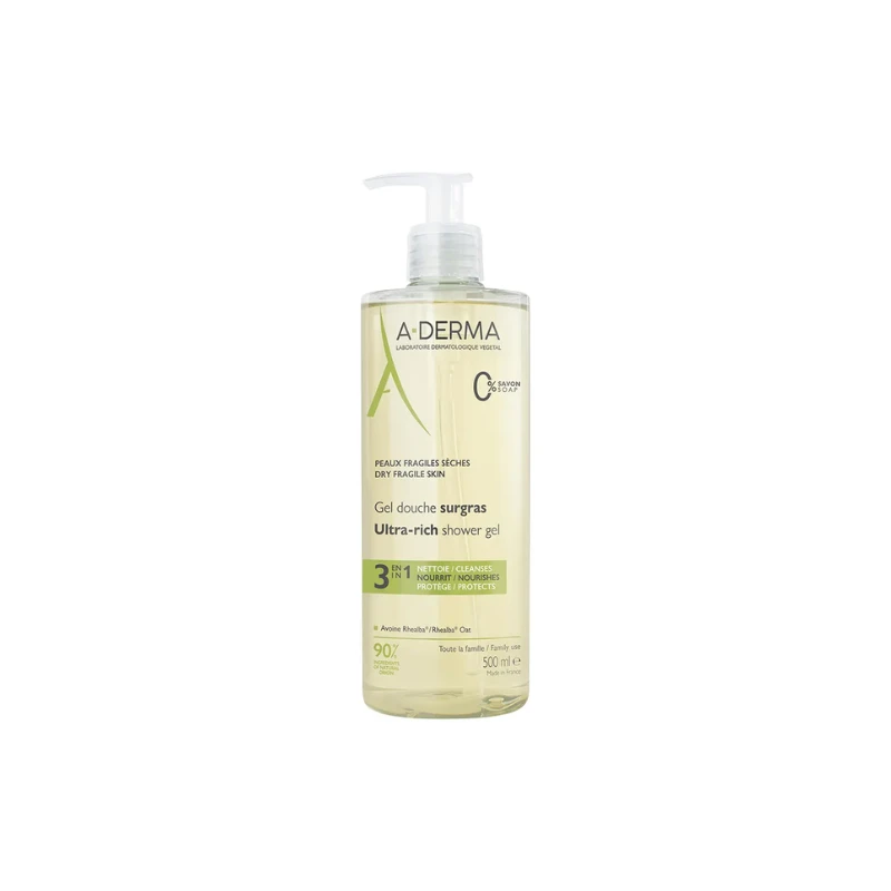 Expert de l’hygiène des peaux fragiles, le Laboratoire dermatologique végétal A-DERMA répond au besoin des peaux sèches avec ce gel douche. Ce soin lavant composé à 90% d’ingrédients d’origine naturelle nettoie en douceur, nourrit et protège. Enrichi en émollients d’origine naturelle, il tire son efficacité et ses vertus apaisantes et relipidantes de l’innovation Clean Care Complex™. Cette association comprend une base lavante douce et un agent compensateur, pour nettoyer sans agresser ni dessécher. Sa formule fondante, à l’extrait de Plantules d’Avoine Rhealba® apaisante adoucit la peau. Biodégradable*, sans savon, le Gel douche surgras est adapté à toute la famille et s’applique sur le visage et le corps. Sous la douche, il se transforme en une mousse aérienne, au parfum léger, qui se rince facilement. La peau sèche est nourrie, apaisée et protégée