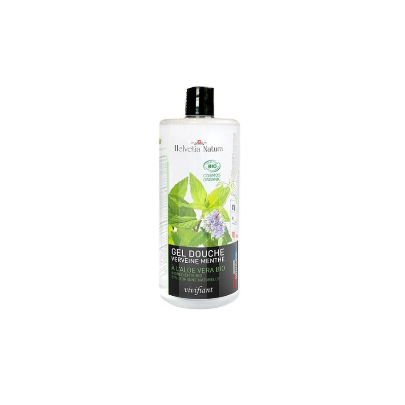 Gel douche hydratant enrichi à l’Aloe vera bio. Certifié COSMOS ORGANIC. Tendre parfum Verveine Menthe.