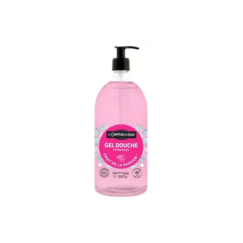 Le Comptoir du Bain Gel Douche Fruit de la Passion 1 L est un gel douche extra-doux au parfum de fruit de la passion, adapté aux peaux sensibles.