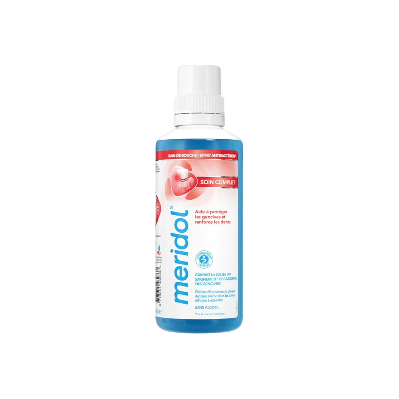 Pour une protection optimale, utilisez le bain de bouche meridol® Soin Complet dans le cadre de votre hygiène bucco-dentaire quotidienne avec le dentifrice meridol® Soin Complet Gencives & Dents Sensibles, la brosse à dents meridol® Soin Complet et le fil dentaire meridol®.
