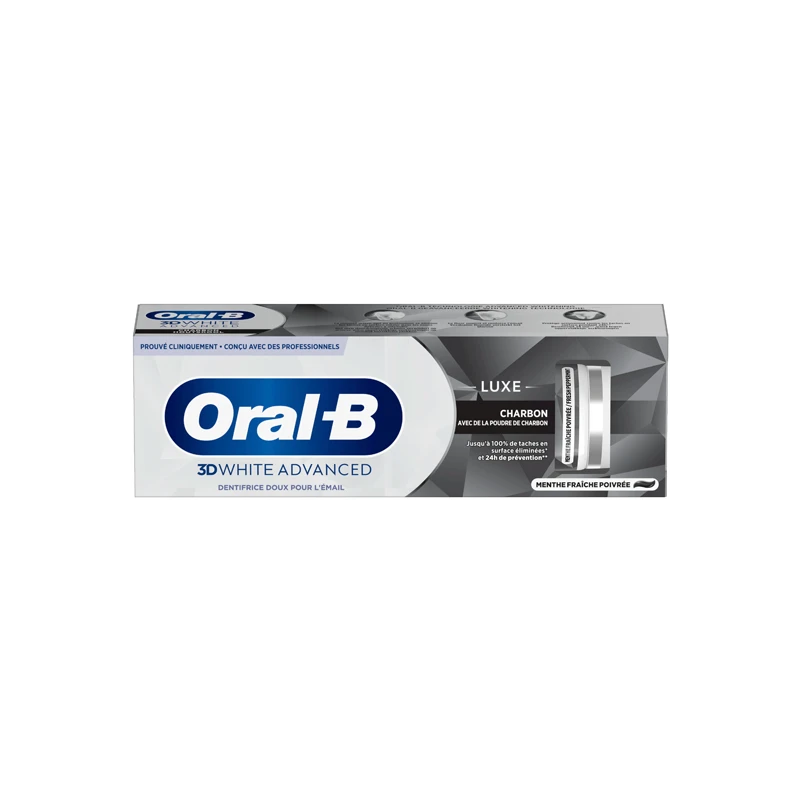 Le dentifrice Oral-B 3D White Advanced Luxe utilise une technologie avancée pour un effet blanchissant efficace. Sa mousse pénètre profondément et élimine les taches en surface, même dans les zones difficiles à atteindre. Enrichi en fluorure, il renforce l’émail tout en le nourrissant. Avec deux brossages par jour, il offre une protection active contre les taches pendant 24 heures.