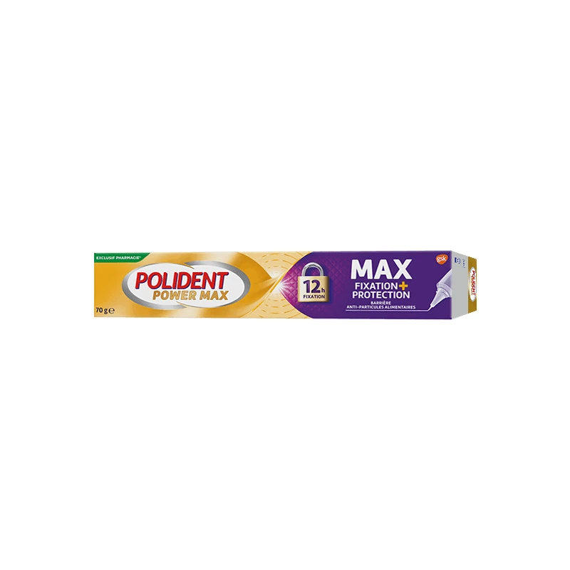 Polident Power Max – Max Fixation + Protection est une crème adhésive qui permet une meilleure répartition (au sein de la gamme Polident) de la crème fixative, qui aide à limiter les infiltrations alimentaires tout au long de la journée.