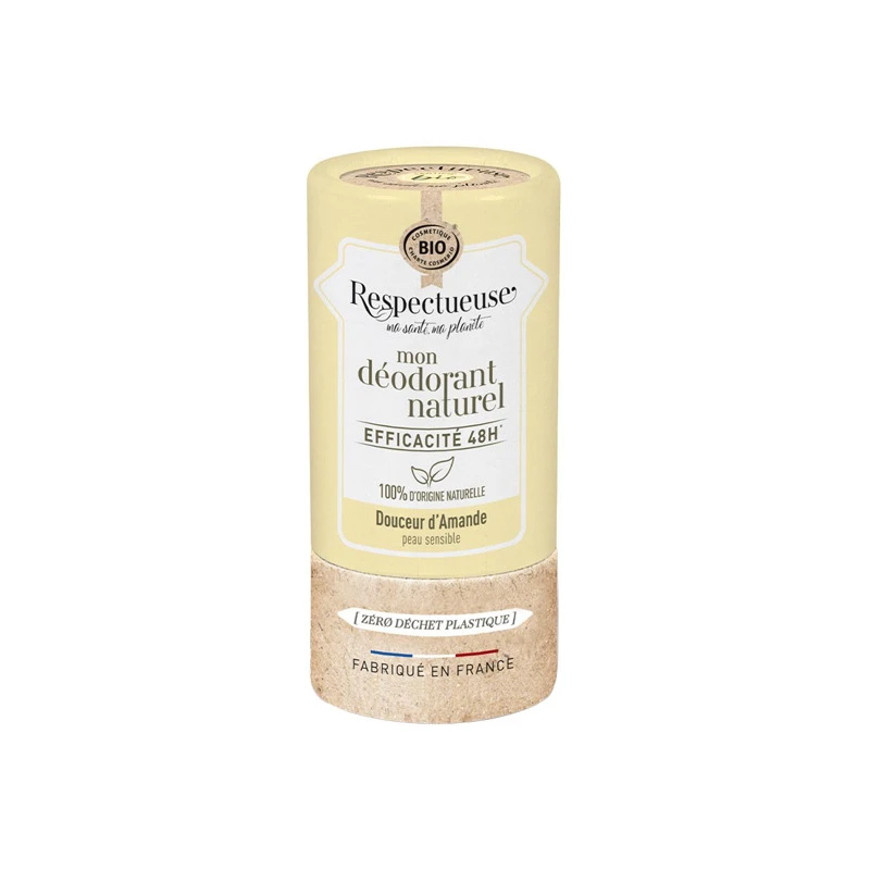 Ce déodorant bio et 100% d’origine naturelle protège des mauvaises odeurs de transpiration pendant 48h grâce à une formule experte associant un trio d’actifs naturels.