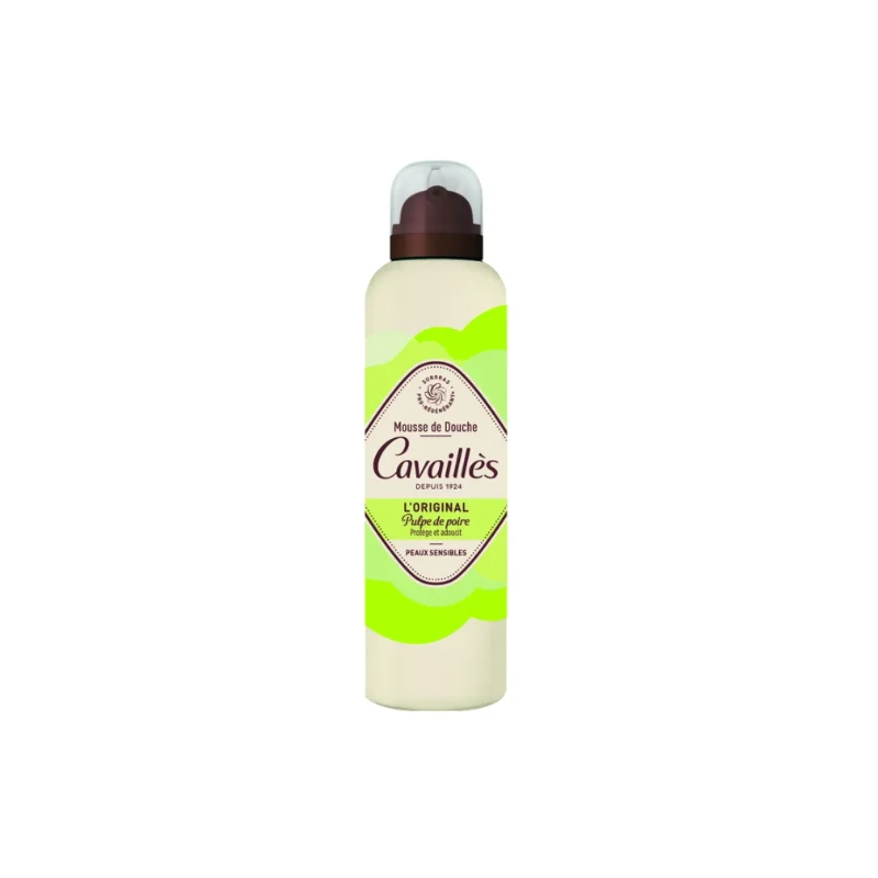 Mousse de douche Pulpe de Poire de Rogé Cavaillès, au contact de l’eau, elle se transforme en une mousse ultra-onctueuse et enveloppante pour délicatement nettoyer les peaux sensibles.